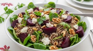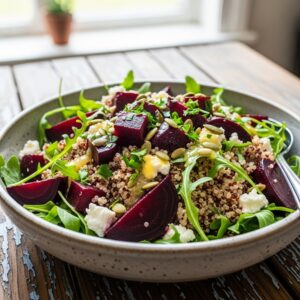 Serve this salad chilled or at room temperature for maximum flavor impact. Garnish with a sprig of fresh parsley or microgreens and a light drizzle of extra virgin olive oil. Pair it alongside grilled chicken or fish for a balanced, nutrient-dense meal or enjoy it on its own with crusty whole-grain bread for a satisfying vegetarian lunch.For added texture,sprinkle pomegranate arils on top to infuse a burst of juiciness that contrasts beautifully with the nutty quinoa and silky roasted beets.